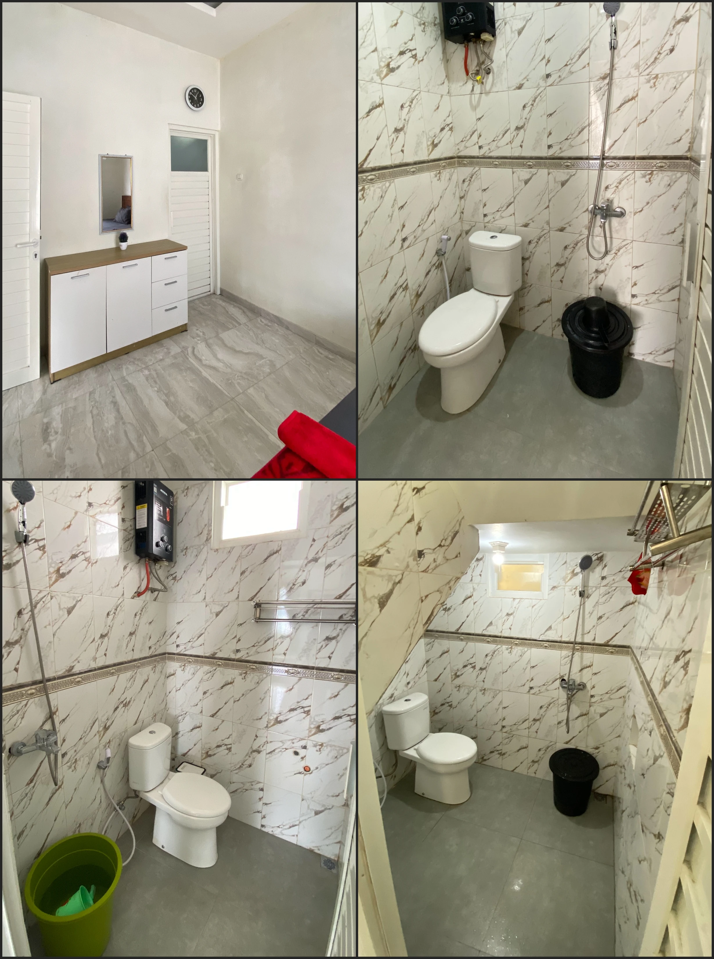 • 3 kamar mandi dg air panas + shower 1 KM didalam, 2KM diluar)
